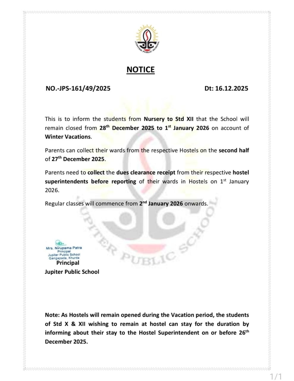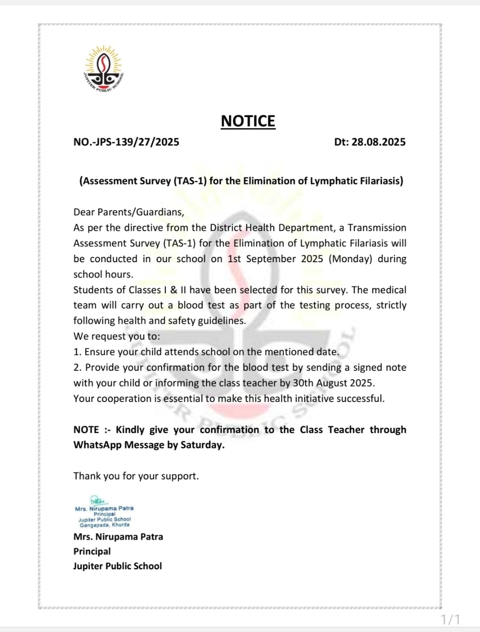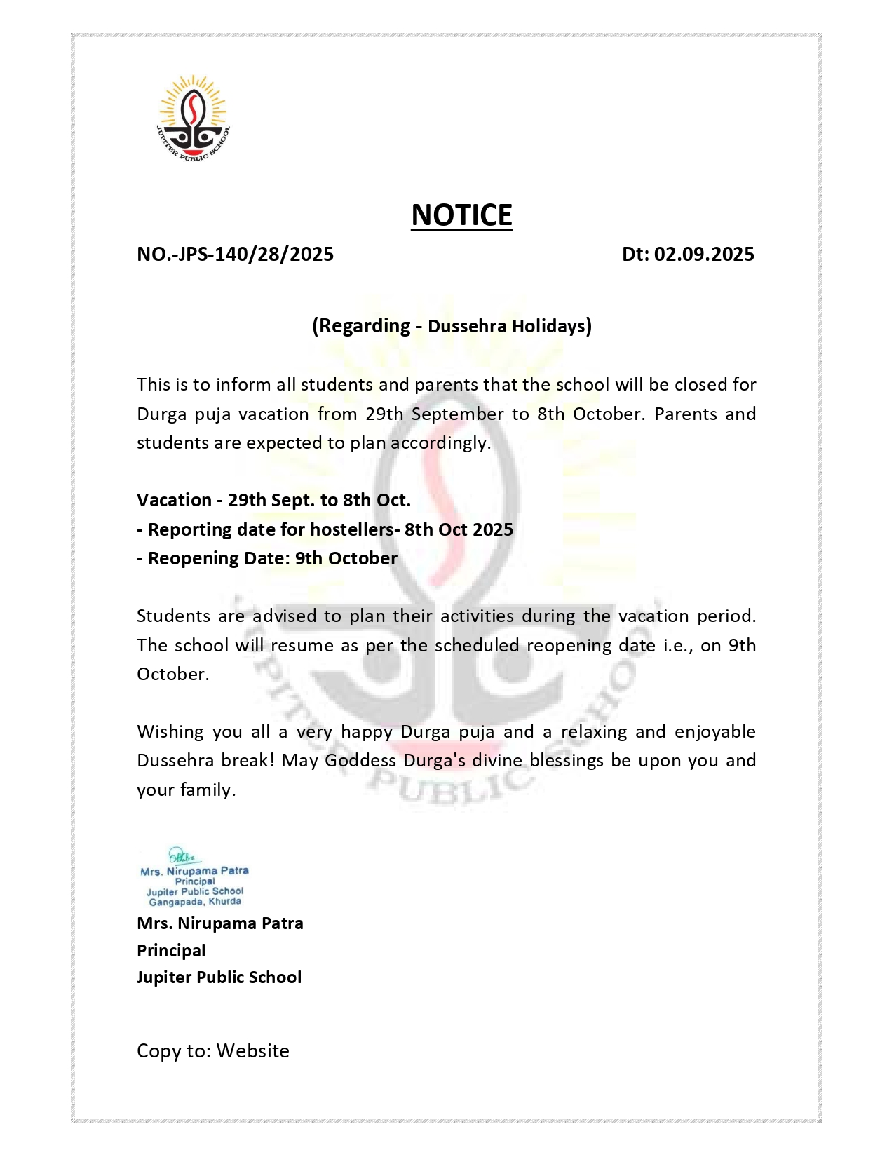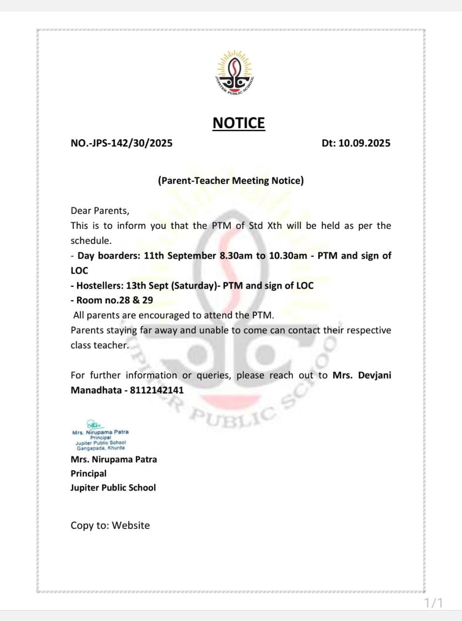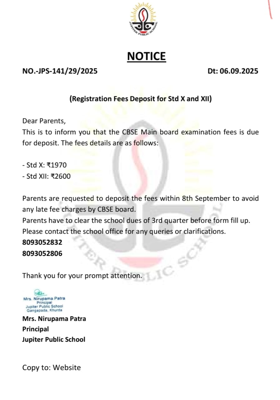 Thank you for your interest at Jupiter Public School. The counselors will get back to you shortly.
